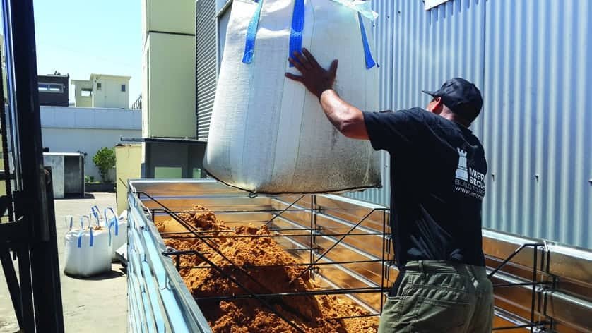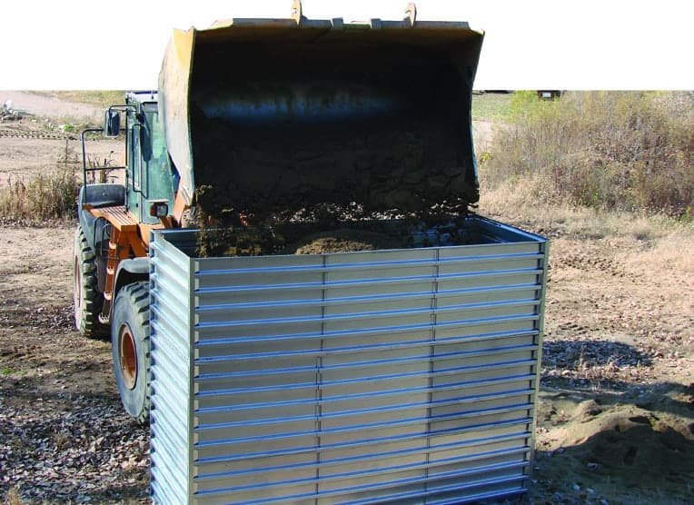 The filling material can be sand, gravel or any other readily available, inert material. Only the light steel sheets must be transported to the site.